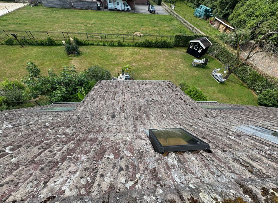 We starten met een dakinspectie om de staat van de pannen te beoordelen. Daarna beschermen we goten, ramen en planten rondom je huis. Zo voorkomen we schade en zorgen we dat de reiniging volledig veilig verloopt voor je dak én je omgeving.