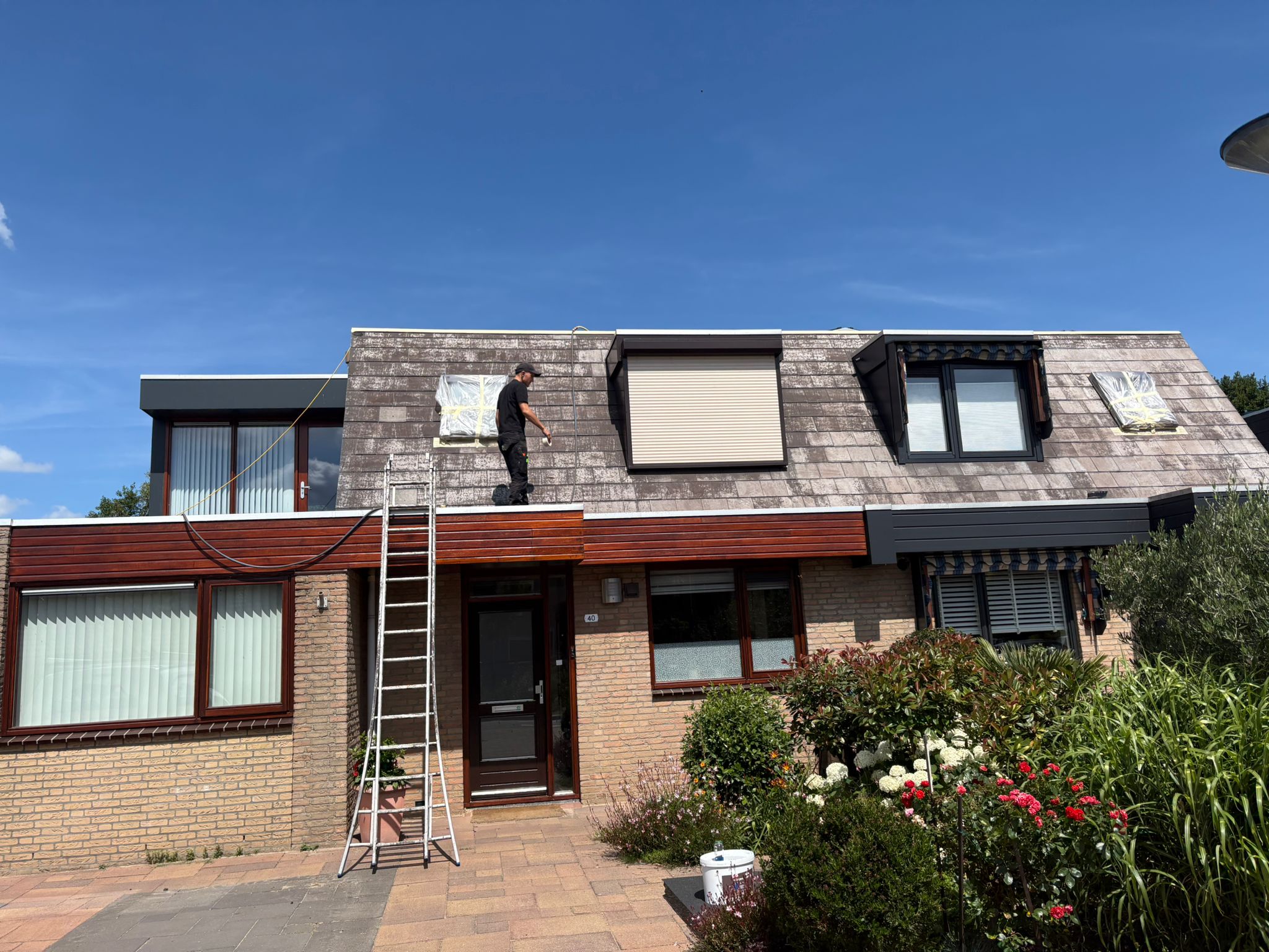 Bij Dakservice Vroegh combineren we grondige reiniging met duurzame bescherming. Eerst verwijderen we alle vuil en aanslag met lage druk, zodat de dakstructuur niet beschadigt. Daarna brengen we een speciale coating aan die het oppervlak verzegelt. Regen spoelt vuil vanzelf weg, en je dak blijft langer droog en kleurvast. Zo geef je jouw dak letterlijk een tweede leven en is het binnen no-time schoon, sterk en verzorgd.
